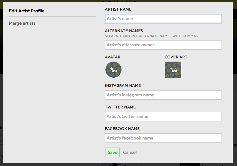 - Edit the artist's profile by adding pictures to the artist's avatar and header. Let people know what your faves look like!